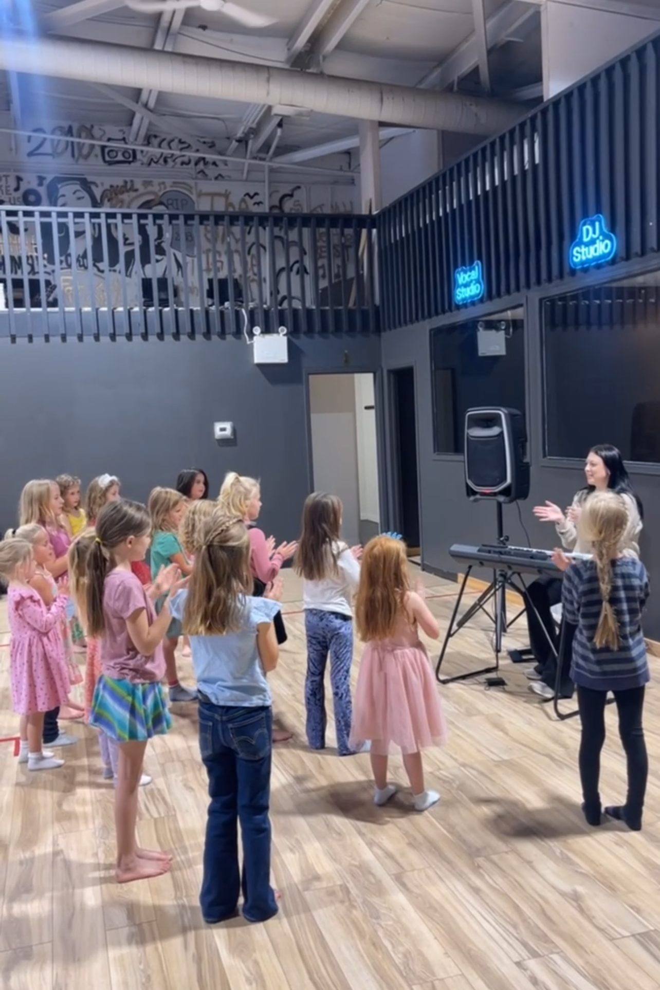 • Open floor dance party where kids can move, play, and enjoy the music
