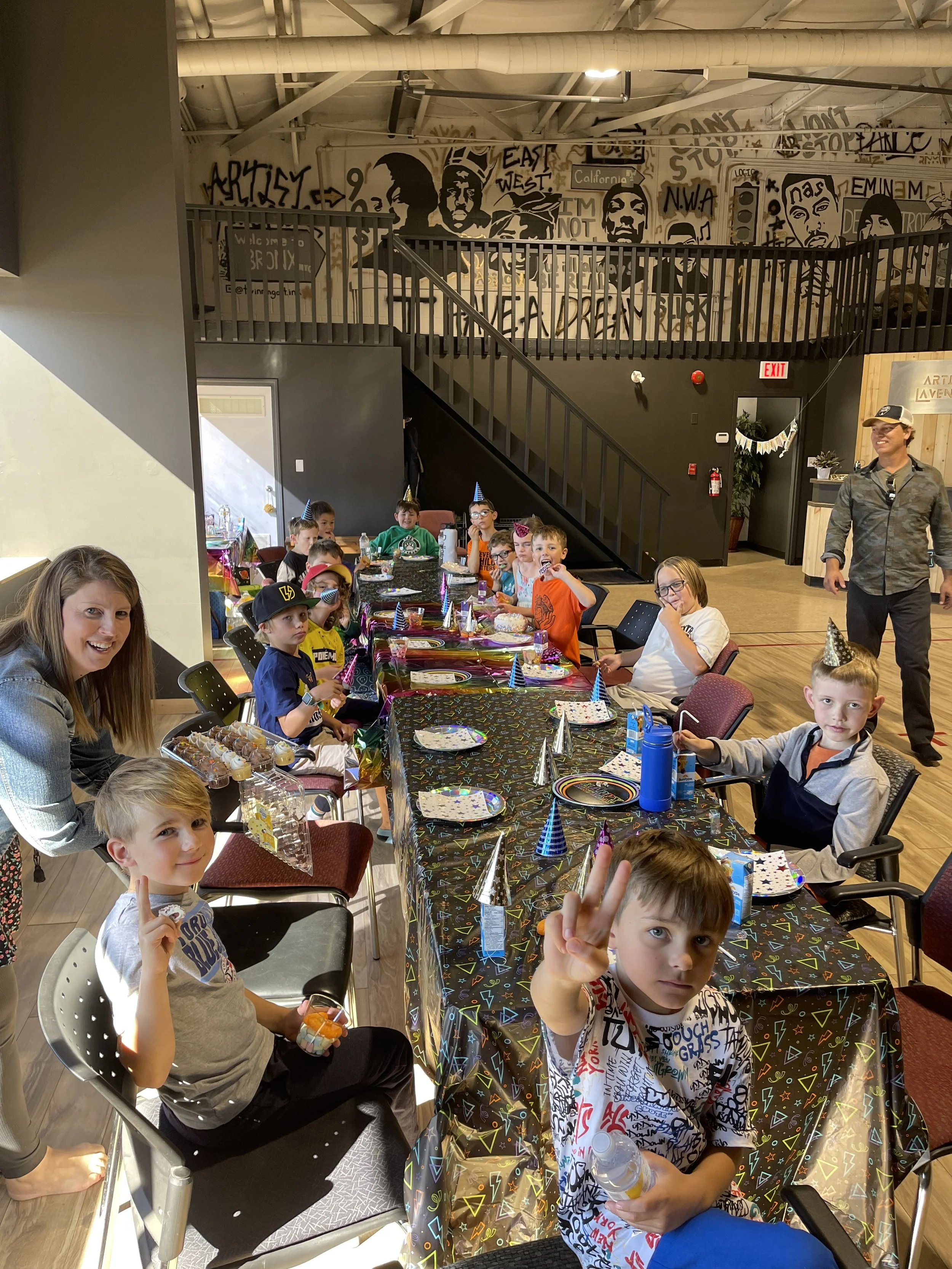Our space can accommodate up to 30 kids. We host parties for all ages.